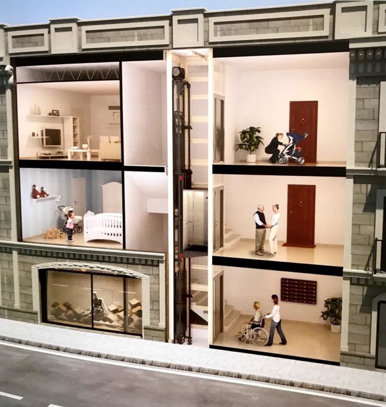 - Las medidas de un elevador se adaptan a huecos irregulares o reducidos.